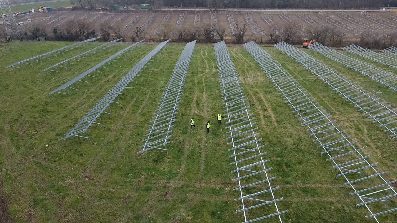Ether Energy prévoit d’installer un champs solaire au sol avec 15,500 panneaux (avec un espacement de 1m entre les rangées de panneaux). Les panneaux seront placés avec une orientation est ouest pour maximiser la production électrique en tenant compte de l’ensoleillement et de l’orientation du terrain.